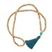 Ce bijou est fait de perles de bois fossilisé, de Jade, du Lapis lazuli.